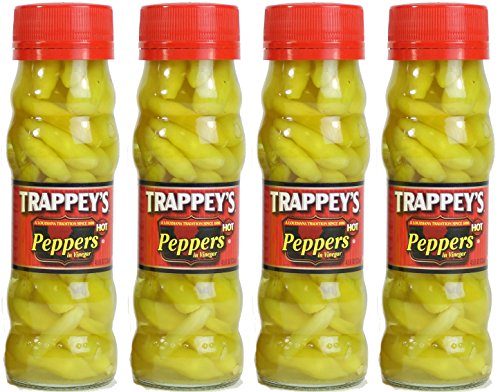 Trappeys Peppers in Vinegar, Hot, 4.5 oz (Pack of 4)