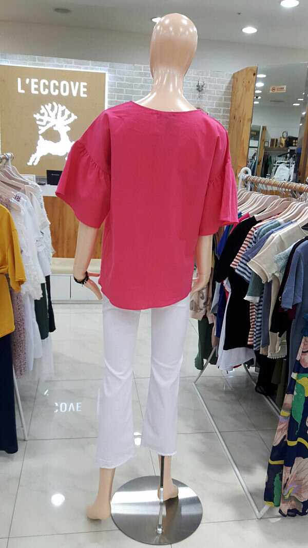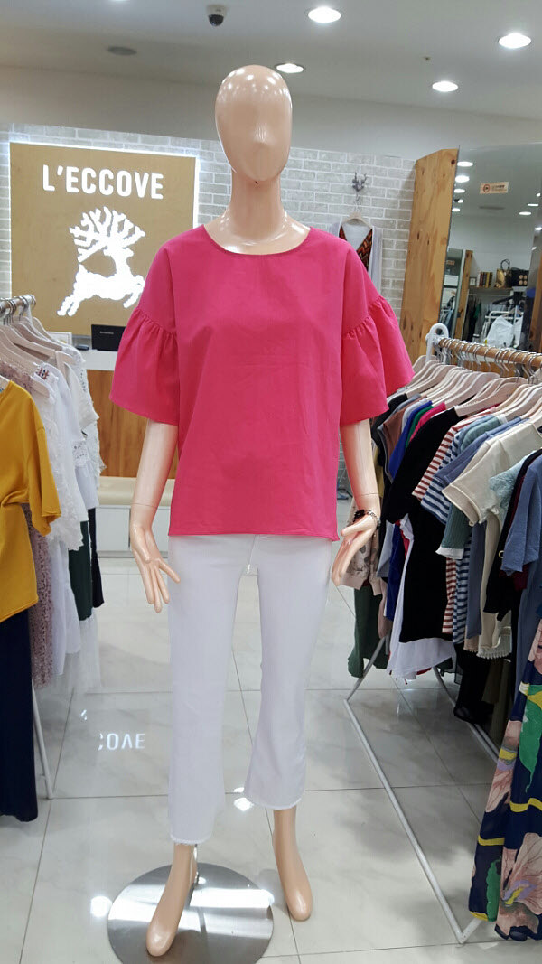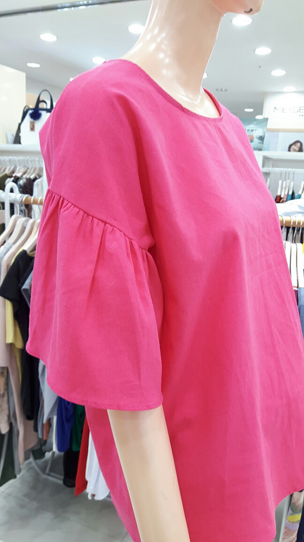 소재가시원한 마블라우스입니다비비드한컬러에 소매에 셔링이있어 귀엽고 여성스러운 아이템입니다