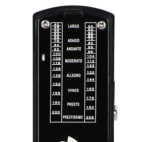 Product Description Features:^Unique mini spring driven traditional metronome, pocket size, very portable.^Made of environmentally friendly materials, impact resistance, stability, wear resistance.^Adopts durable copper gear movement, stable working.^Reliable wind-up mechanism ,no batteries needed.its sound is soft, without bell ringing. Tempo range of 40 - 208 beat per minute,all the rhythm you need is under your control.^Metronome can help you train your concept on music speed, make your instrumental performance more complete and smooth.^Not only used for the Guitar /Bass/ Violin /Piano or other instruments rhythm practice, also can be used in such as: hypnosis, psychotherapy, golf, dance.Specifications:*Brand:FLEOR.*Model:FM-10.*Type: Mini pocket size.*Material: Hard plastic outer with high quality metal mechanism.*Tempo: 40 - 208bpm,Tolerance: less than 1%.*Color: Black.*Item Size: 3.1*5.3*11cm(L*W*H).*Item Weight: 185g. Package Weight:220gPacking List:1 X Metronome1 X Manual 0