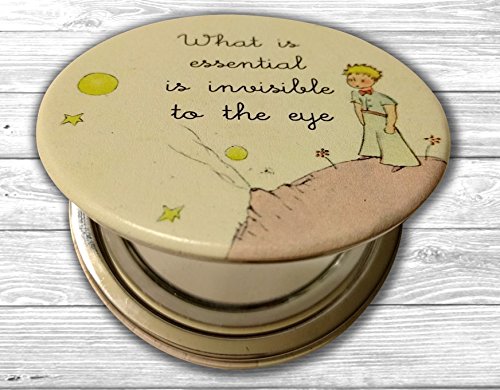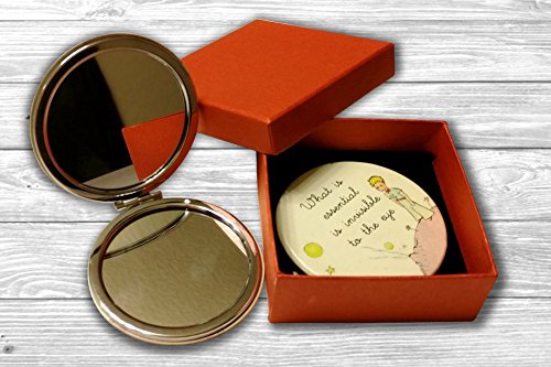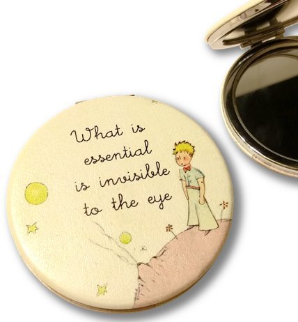 PU leather with the image of the Little Prince on his little planet is on both sides. Mirrors held in place with chrome plated stainless steel