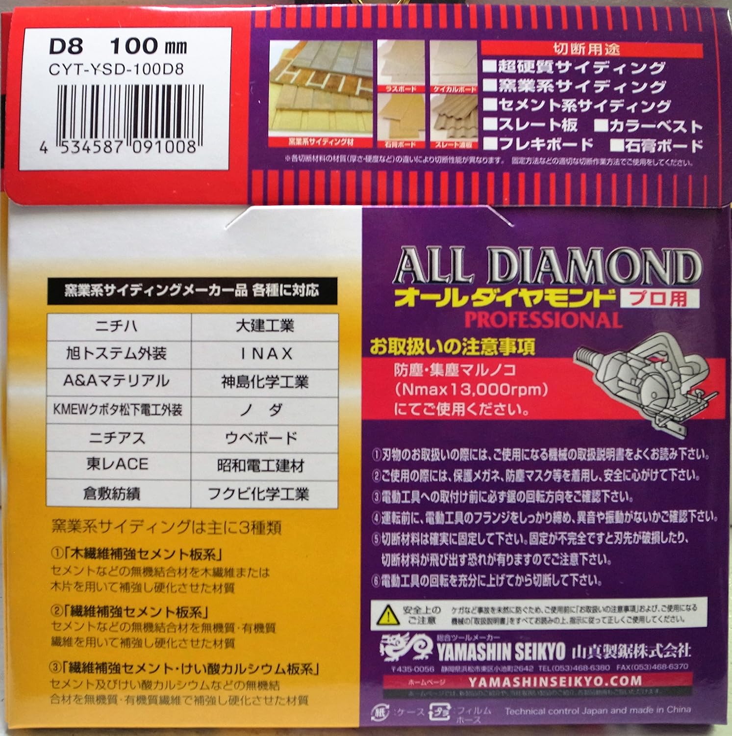 品番:CYT-YSD-100D8 外径:100mm 内径:20mm 刃厚:1.8 刃数:8