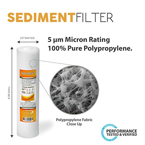 Express Water FLTSED0550 5 Micron Sediment Water Filter Cartridge for Reverse Osmosis 10" x 2.5", Polypropylene, (Pack of 50)