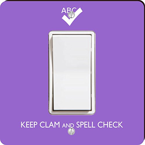 Studio : Rikki Knight LLC Publisher : Rikki Knight LLC Binding : Kitchen Product Description The Keep Clam and Spell Check Violet Color single rocker light switch cover is made of commercial vibrant quality masonite Hardboard that is cut into 5" Square with 1/8" thick material. The image is printed directly into the switch plate and not decoupage which make these suitable for use in any room in the home or workplace. These Light Switch Plates can also be matched up with other products we have such as Wall Clocks, Cutting Boards, Tiles, Wood Frames, etc. Please ensure you have at least 2" available space on each side of the frame. This Rikki knight Keep Clam and Spell Check Violet Color could be an ideal gift for all occasions! Disclaimer: All images are printed directly into the material - The Texture of the image will always be a flat surface. Any images that appears to be 3d, textured, or glittery are flat printed images and are proudly printed in the USA. 0