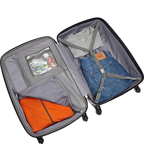 Product Description This extremely lightweight and durable Spinner Set features 100% polycarbonate construction with sharp molded details. This spinner boasts a spacious, divided, and fully-lined interior with cross-straps, a privacy curtain with its own zippered organizational pockets, and plenty of room for your business or pleasure trip necessities. 0
