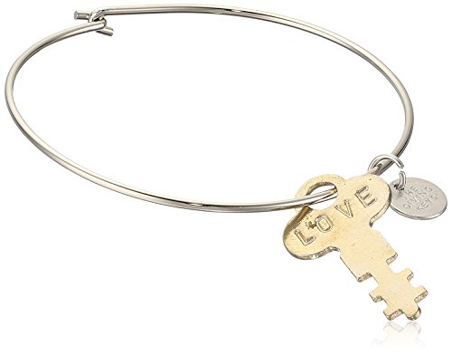 Bangle bracelet with dainty key pendant finished with hook clasp