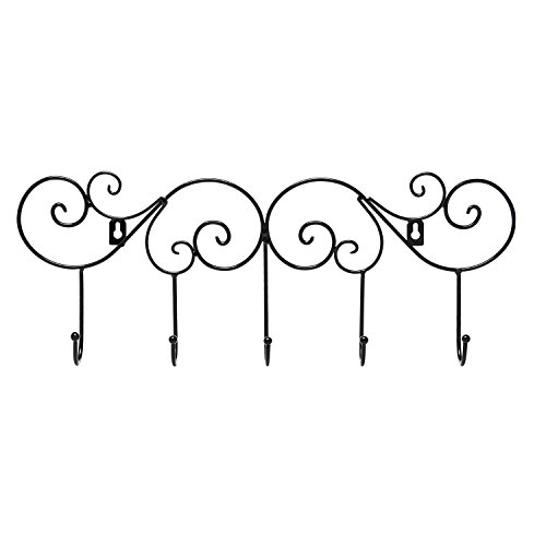 Scrollwork Metal Wall-Mounted Hook Rail, Garment Hanger Organizer Rack w/ 5 Coat Hooks – MyGift