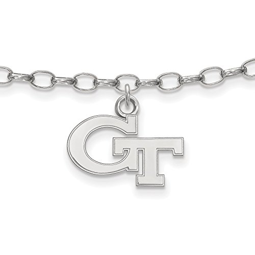 Solid 925 Sterling Silver Georgia Institute of Technology Anklet - with Secure Lobster Lock Clasp (15mm)