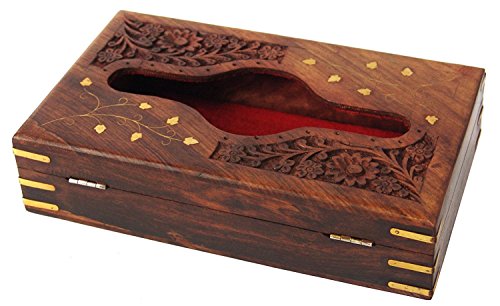Valentine Day Special Gift, Wooden Carving-Inlay Work Tissue Box, Tissue Paper Holder, Tissue Box Dispenser, Tissue Box Desk Organizer, Tissue Box Rectangle, Brown Color Size 9 x 5 Inch