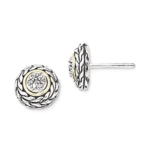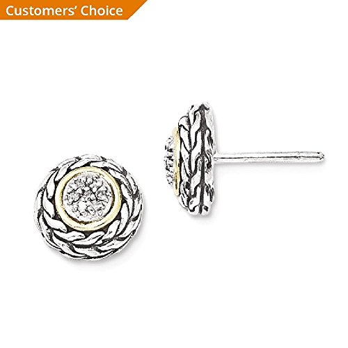 ICECARATS DESIGNER JEWELRY 925 STERLING SILVER 14K DIAMOND POST STUD BALL BUTTON STUD EARRINGS