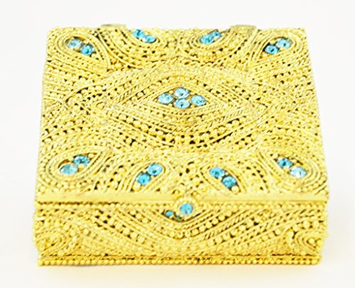 Ciel Collectables 10120016B Big Square Aqua Swarovski Crystal Trinket Box, 3" x 1" x 3"