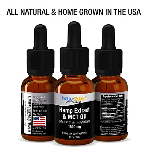 Hemp Extract + MCT Oil (1500mg) - From 100% Organic Colorado Grown Hemp Seed By Better2Day. Rich in Omega 3, 6 Fatty Acids. Natural Anti...