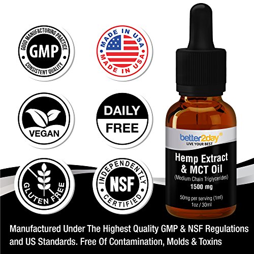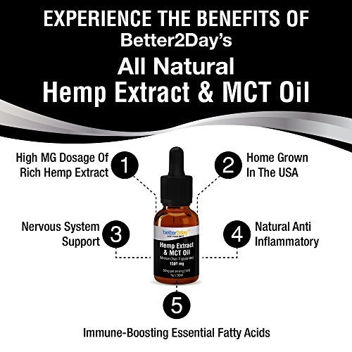 - DON’T BE FOOLED BY CHEAP IMITATIONS! Most Hemp oil supplements offer weak formulas with synthetic fillers! With Better2Day Hemp Extract + MCT Oil you are guaranteed the highest quality of hemp homegrown in Colorado, USA for the best absorption and maximum bioavailability.