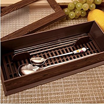 Chopsticks Spoon Organization Storage Box with Open Window Tree Wave Pattern Design
