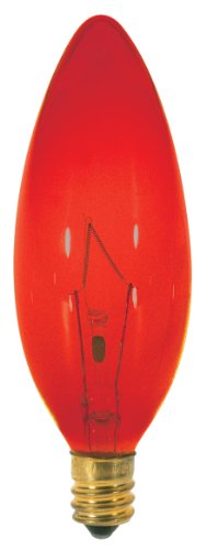 Satco S3219 25 Watt B9.5 Incandescent 120 Volt Candelabra Base Light Bulb, Transparent Red