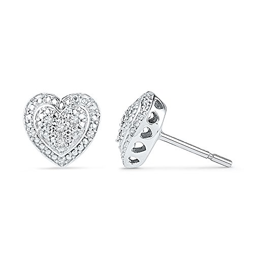 Sterling Silver White Round Diamond Heart Earring (1/20 CTTW)