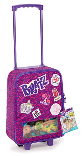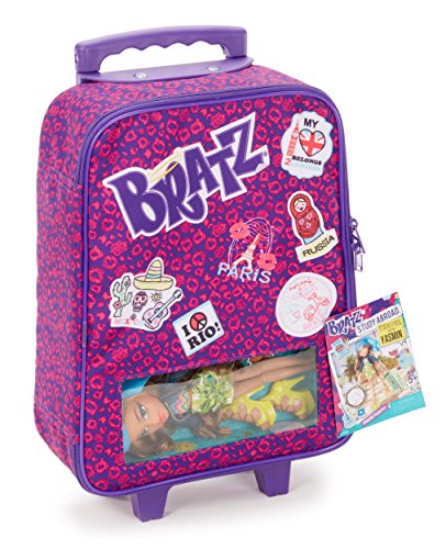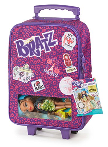 - Fashionable rolling luggage accessorized with a Bratz Study Abroad Yasmin doll!