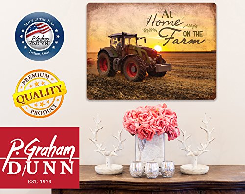 At Home on The Farm Tractor Farmer 16 x 12 Metal Tin Wall Sign Plaque