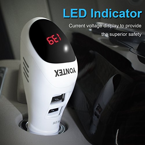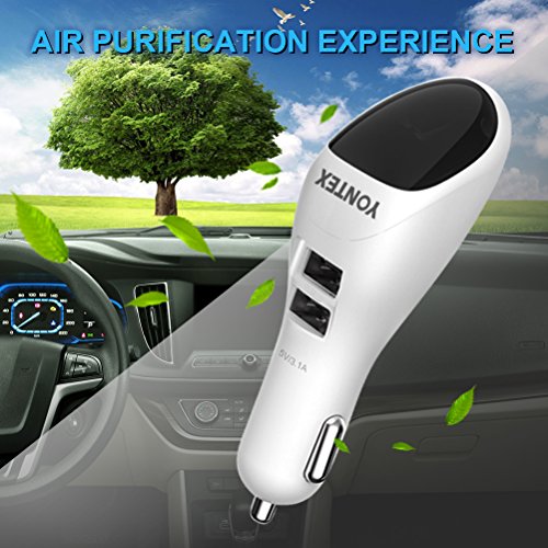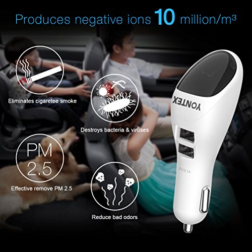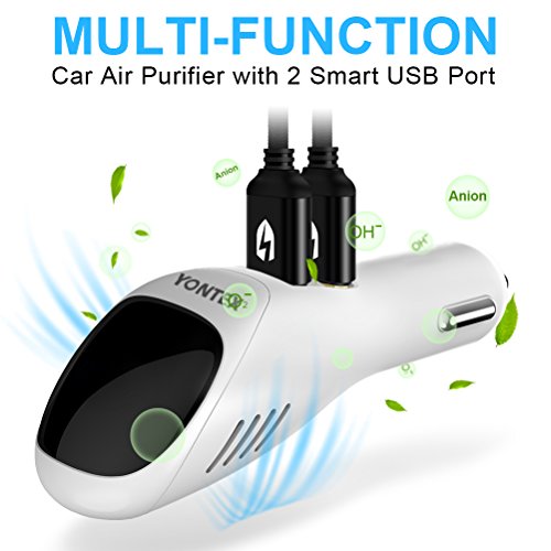 Car Air Purifier, YONTEX Ionic Air Cleaner Ionizer with 2 Smart USB Port Smart Car Charger - Removes Smoke, Bad Smell and Odors Eliminator - Care Your Family's Health [White]