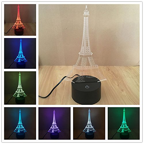 -. Title : 3D illusion Romantic France Eiffel Tower bedroom night Light color change USB Touch button LED desk table light lamp Creative Design Desk Lamp for gift