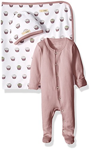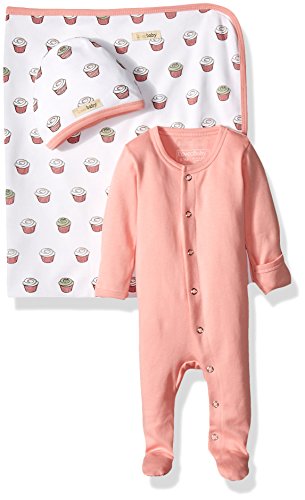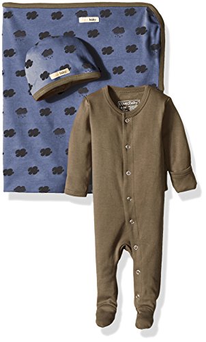 Organic cotton blanket, hat, and footed sleeper bundle/gift set