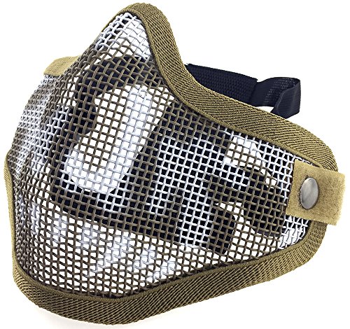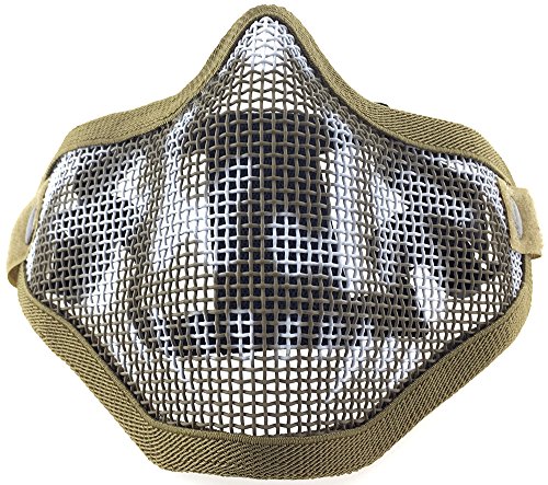 -. Binding : Misc. -. Brand : SportPro -. Color : Black -. EAN : 6081499598555 -. Feature : • Flexible and Moldable Mesh / • Lower Face Protection / • Padded Head Strap for Extra Comfort / • Adjustable Head Band / • Maximum Air Flow -. IsAutographed : 0 -. IsMemorabilia : 0 -. Label : CM -. Manufacturer : CM -. ProductGroup : Sports -. ProductTypeName : SPORTING_GOODS -. Publisher : CM -. Studio : CM -. Title : SportPro Mesh Lower Face Skull Half Face Mask for Airsoft - Dark Earth