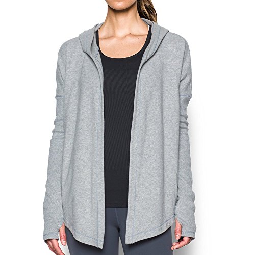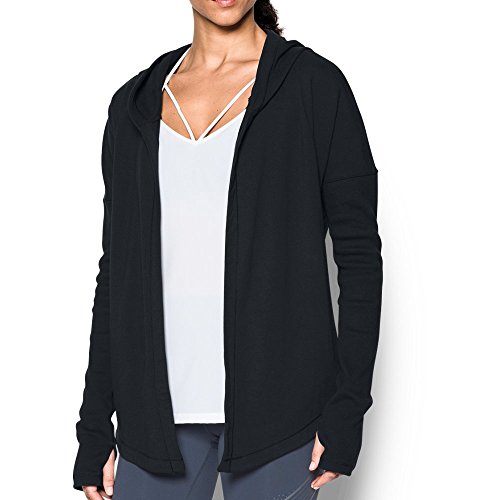 Product Description Super-soft terry construction delivers lasting comfort . Signature moisture transport system wicks sweat to keep you dry light. Open front design for easy layering on the go. Generous, oversized hood . Ribbed sleeves with built-in bonded thumbholes. Dedicated media storage pocket. 0