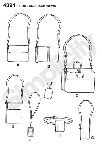 -. Feature : Accessories in size os (one size) simplicity pattern 4391 / Number of looks included:7 / Designed and manufactured in the usa / Sested Fabrics: 45-Inch to 60-Inch (115cm to 150cm) wide with or without nap such as Broadcloth, Canvas, Denim, Sport Nylon