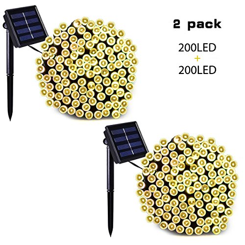 Binval Solar String Lights 2-Pack 72feet-200LED Fairy String Lights for Outdoor Patio Lawn Landscape Fairy Garden Home Wedding Holiday Christmas Party and Xmas Tree Waterproof(Warm White)