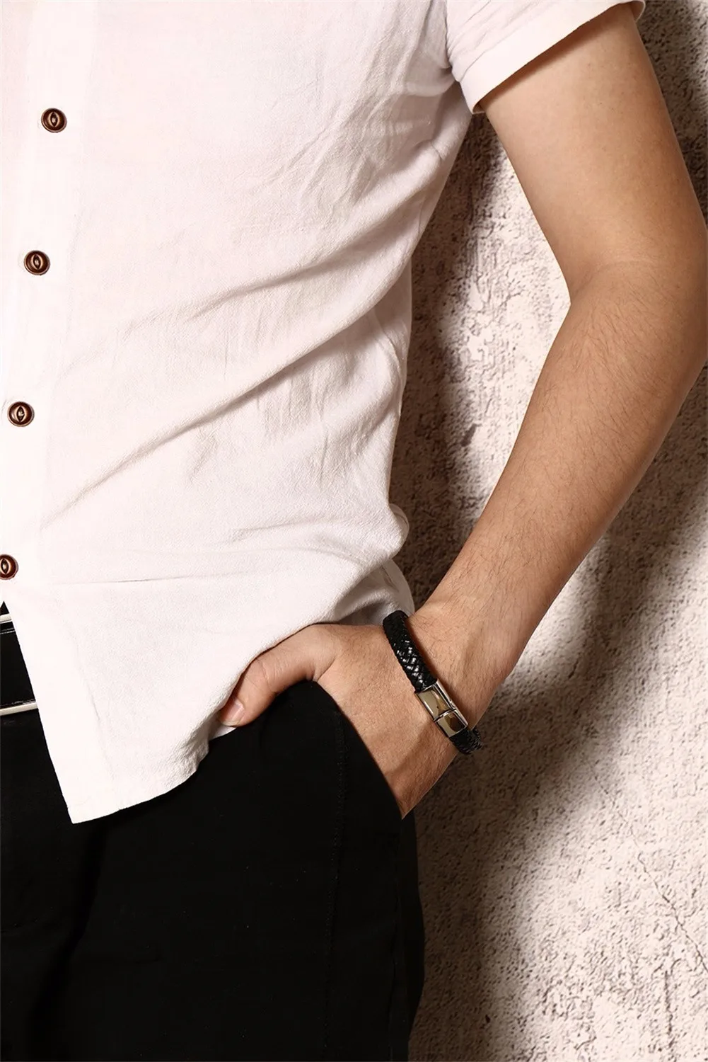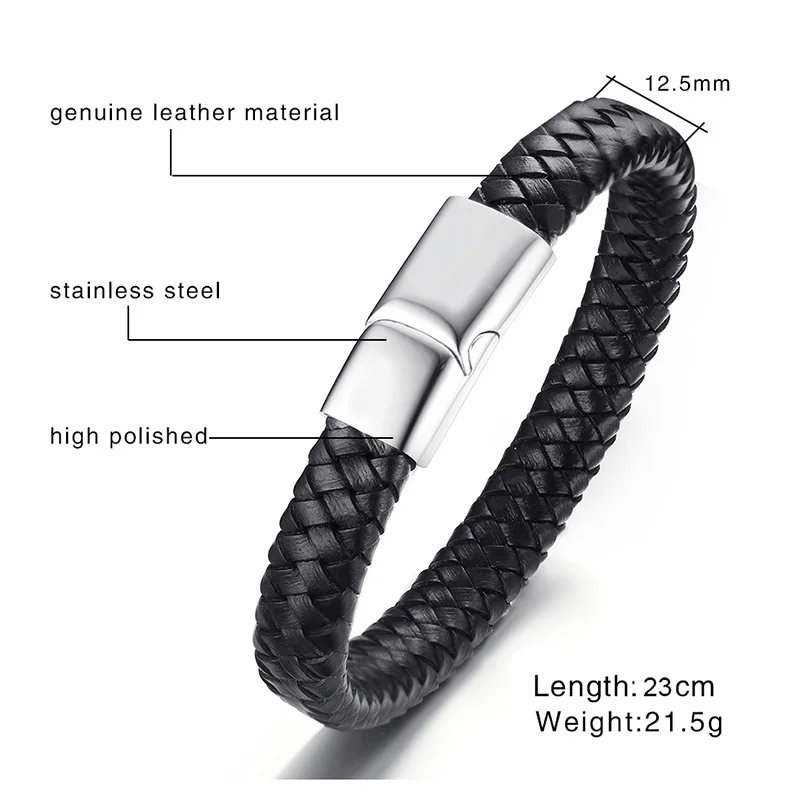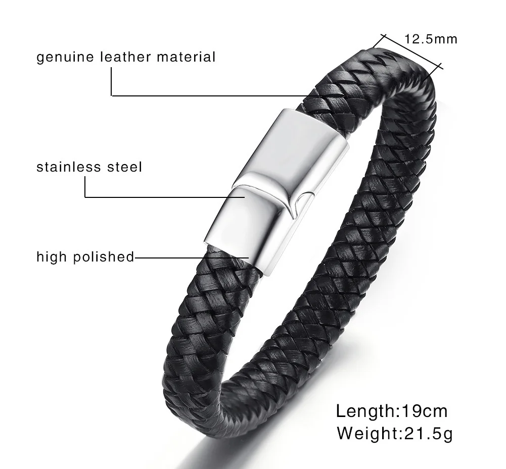 Shape\pattern:Round Braided Leather Bracelet