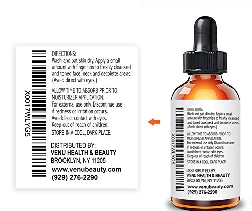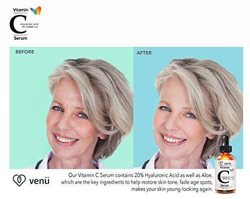 Benefits of Vitamin C Serum: Our Vitamin C Serum contains 20% Hyaluronic Acid as well as Aloe, which are the key ingredients to help restore skin tone, fade age spots, makes your skin young-looking again. Apply before applying makeup, as C Serum helps prepare skin for better absorption of moisturizer and makeup. Our High-quality Product: Not all Vitamin C Serums are made the same. We formulated our Vitamin C Serum so that it goes on your skin smoothly, it is non-greasy, and gets absorbed in your skin. We have packaged our Serum in a PBA-free packaging. Our glass bottle ensures that our Serum maintains its original formulation quality. Directions: Wash and pat skin dry. Apply 5 to 10 drops with fingertips to freshly cleansed face, neck and shoulder areas. Always apply before applying cosmetics. Avoid direct contact with eyes. For External Use Only: Discontinue use if redness or irritation occurs. Avoid direct contact with eyes. Keep out of reach of children. Store in a cool Dry Place. Guarantee: We offer you a complete satisfaction guarantee. If you are not completely satisfied, we will refund you the cost of your purchase. Place an order of our Vitamin C Serum and enjoy youthful, skin all over again.Feature