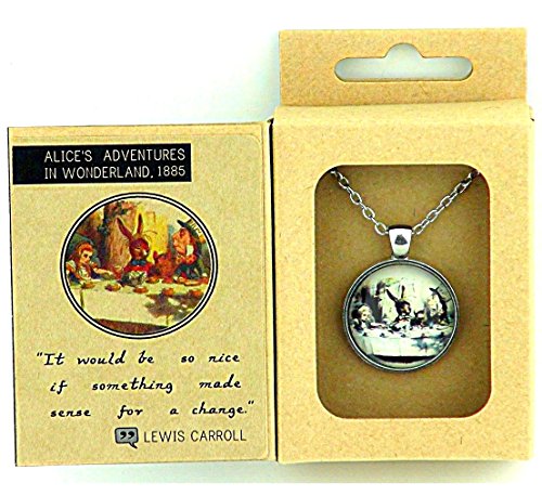 "ALICE'S ADVENTURES IN WONDERLAND" - VINTAGE STYLE PENDANT IN LEWIS CARROLL QUOTE BOX - "IT WOULD BE SO NICE IF SOMETHING MADE SENSE FOR A CHANGE."