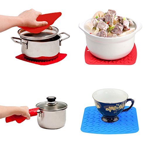 ❤ 5.COLORS & DIMENSIONS: Love these silicone honeycomb trivet come in a variety of bright colors.2PCS Red, 2 PCS Orange,1 PCS Blue;6.9" x 6.7" x 0.16".Hot insulation pads are large enough to actually be able to use to get a hot pan out of the oven and your hands are covered and protected from the heat.they are the size of most pot holders and you can use them on my table if you want to set a hot pot on the table and not mess up the table.Set your pots on the table and just serve out of them.