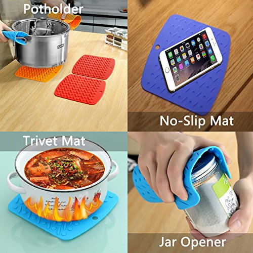 ❤ 1.MULTIPURPOSE: Icefire silicone honeycomb trivet hot pads can be used as pot mat to protect hot pans safely;Jar Opener to open your Jar;Spoon or Dishes Rest.Protect Your Kitchen surfaces,coasters for you beer.Our heatproof silicone dish drying mat can be used in microwave ovens,cabinets and countertop,toaster,induction stove.Commonly used as tea & coffee pot holders,silicone placemats,dish drainer mat,drain & draining board,sink drying mat,cutlery and as trivets on your dining table corian.