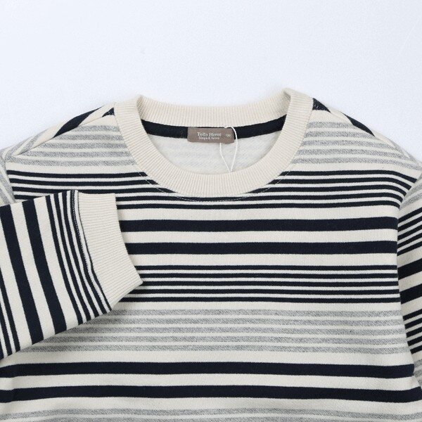 심플한 스트라이프티입니다 기모티셔츠로 따뜻하며 면바지,청바지와 코디하셔도 예뻐요-