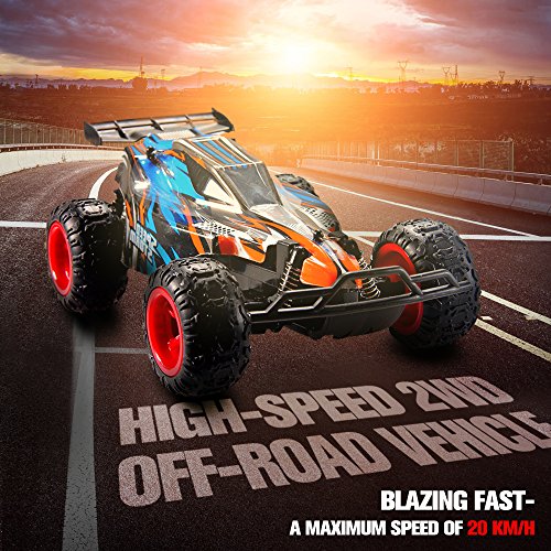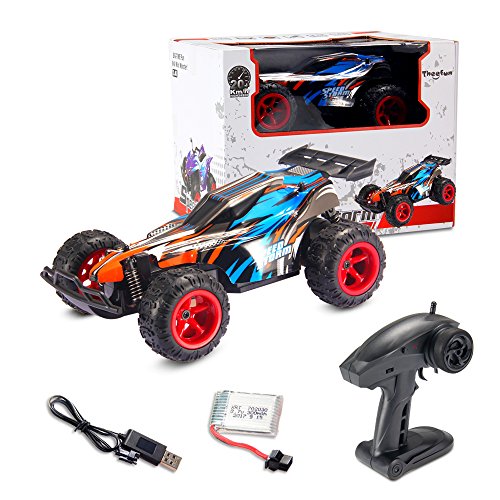 Studio : Theefun Publisher : Theefun Product Description Kids, RC hobbyists, and everybody in between will love Theefun RC monster truck! This rugged truck is small but mighty- it can speed over concrete, sand, grass, and more without missing a beat. The suspension system keeps the body above ground at all times and prevents potential damage. Even rocks are no match for this RC truck! You'll enjoy 20 minutes of high-speed fun per each full charge. Thanks to the connection range of up to 30 meters, you'll be in complete control of your truck from near or far. Better yet, the advanced RC transmitter can support multiple trucks in close range without interference. Invite some friends over and have a race! Try out some awesome driving tricks! The possibilities are endless. It's the perfect addition to your RC arsenal. Specifications Scale: 1: 22 Speed: 20km / h Controller Distance: About 30m Batteries of Car: 3.7V 300mAh Charging Time: 60 minutes Playing Time: 15-20 minutes Material: Plastics, ABS Batteries of Remote Control: 2 x 1.5V AA battery (not included) Car Dimension: 21.5*13*7 cm/ 8.46*5.12*2.75in Car Weight: 230g(0.51lb) Package Weight: 553.5g(1.22lb) Package Contents 1 x RC Car 1 x Remote Controller 1 x 3.7V 300mAh Lithium Battery 1 x USB Charging Cable 1 x User Manual