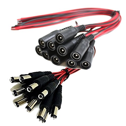 - Pigtails DC Power Pigtails Adaptor Plug Lead Connectors Cable for DVRs, CCTVs, Cameras Used to connect security cameras to your power distribution system or power adapters.it also perfect for 5050 3528 led strip ,easy to installed .Two bare wires on the other Black wire jackets indicate polarity . Length of line:11.5cm; in length Provides a simple solution for power connectivity.