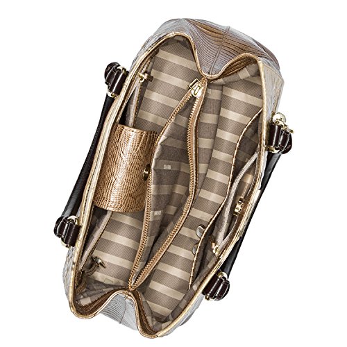 -. Title : Brahmin Ventana Collection Joan Embossed Leather Tote in Summer Tortoise