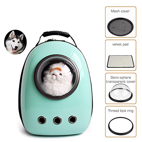 Description: Made of selected canvas hign density acrylic material Space capsule designing makes the bag cute, fashion Exterior breathable hemispherical transparent cover helps ease pet anxiety Desiged with breatbable mesh Large capacity space-capsule to carry pet cat or small dog Product size: 29 x 23 x 42cm Transparent cover diameter: 15.5cm Packing List: 1 x Space Capsule Bubble Pet Carrier Waterproof Handbag Backpack for Cat and Small Dog ? ? ? ? ? ? ? ? ? ? ? ??