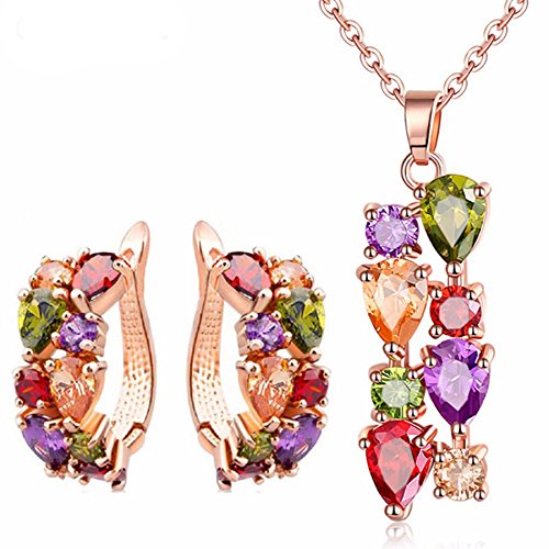 Micro Colorful Inlaid CZ Necklace Earrings Set Zircon Small (colour4)