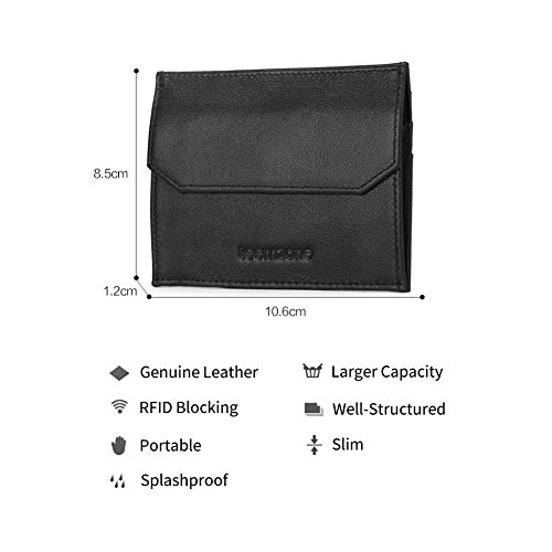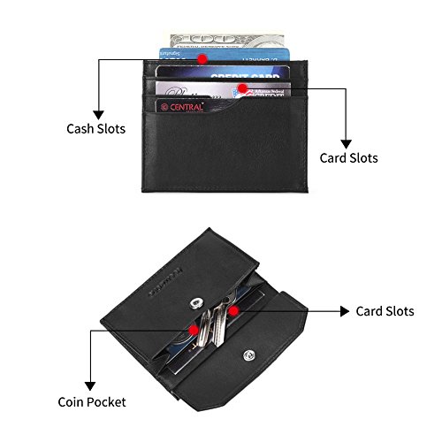 -. Feature : ✔With RFID Blocking function for all the card slots, Protect your personal information from stealing. / ✔MATERIAL: Top Grain Genuine leather very durable to use, Lining: Polyester. / ✔Compact Minimalist Wallet for Men: It has 5 card slots, one coin holder, middle one cash holder. Such a small wallet can almost hold all the things you need. / ✔SLIM DESIGN: The small wallet can easily slips in and out of your pockets, not bulky at all, Minimalist style and looks slim. The Best choice to get rid of your bulky wallet. This wallet is slim enough to hold it in palms and could be simply put into front, back or breast pockets. For being accessed quickly at any time. / ✔6-MONTH WARRANTY: You can return this wallet if any defect caused during your use of this product. We can give you full refund or free replacement whichever is at your most convenience.