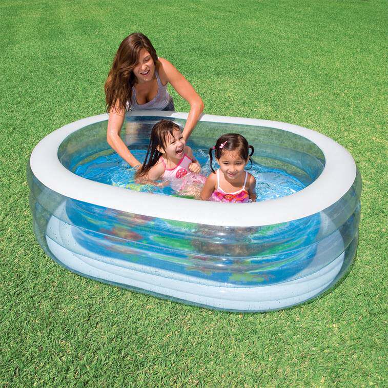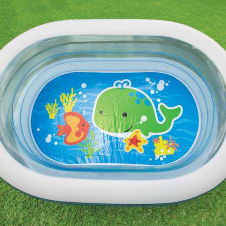 Product specifications: 163 × 107 × 46cm 0.30mm plastic materialWeight: 2.8KGFeatures: High-density non-toxic PVC plastic, three blue transparent circular wall, thickened wall, storage capacity 238 liters, with drain holes
