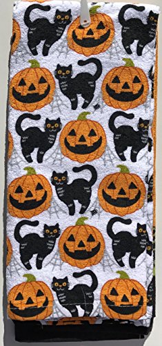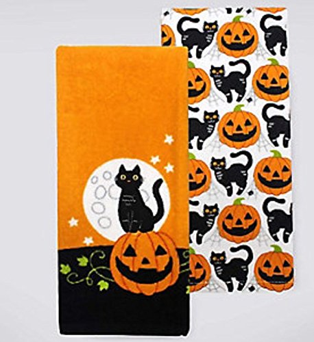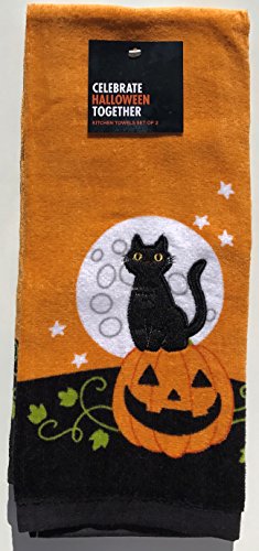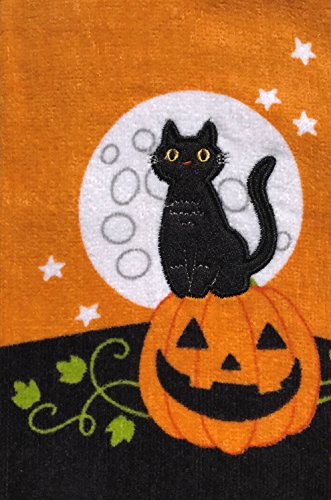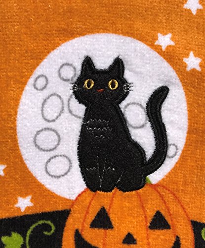 Celebrate Together Embroidery Black Cat Decorative Cotton Kitchen Bath Towels, Set of 2