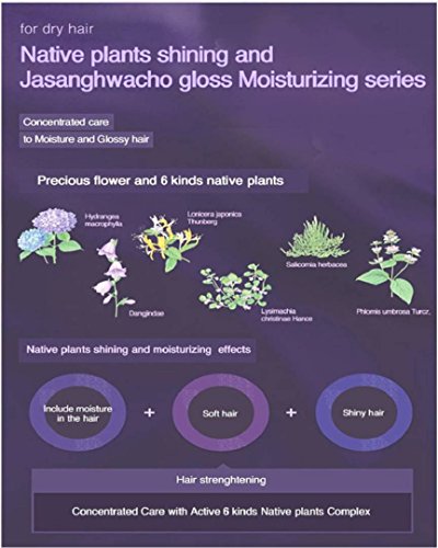 -. Feature : Concentrated care to moisture and glossy hair / precious flower and 6 kinds native plants / Include moisture in the hair / Soft hair / Shiny hair