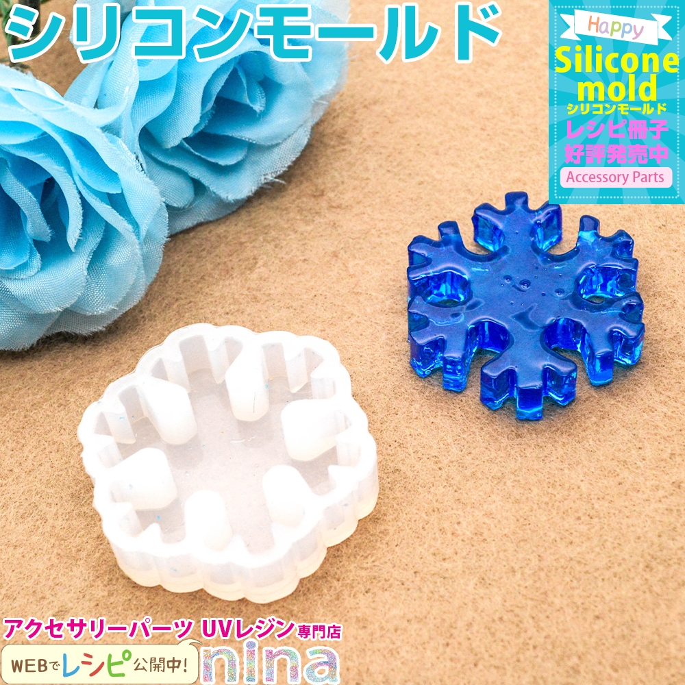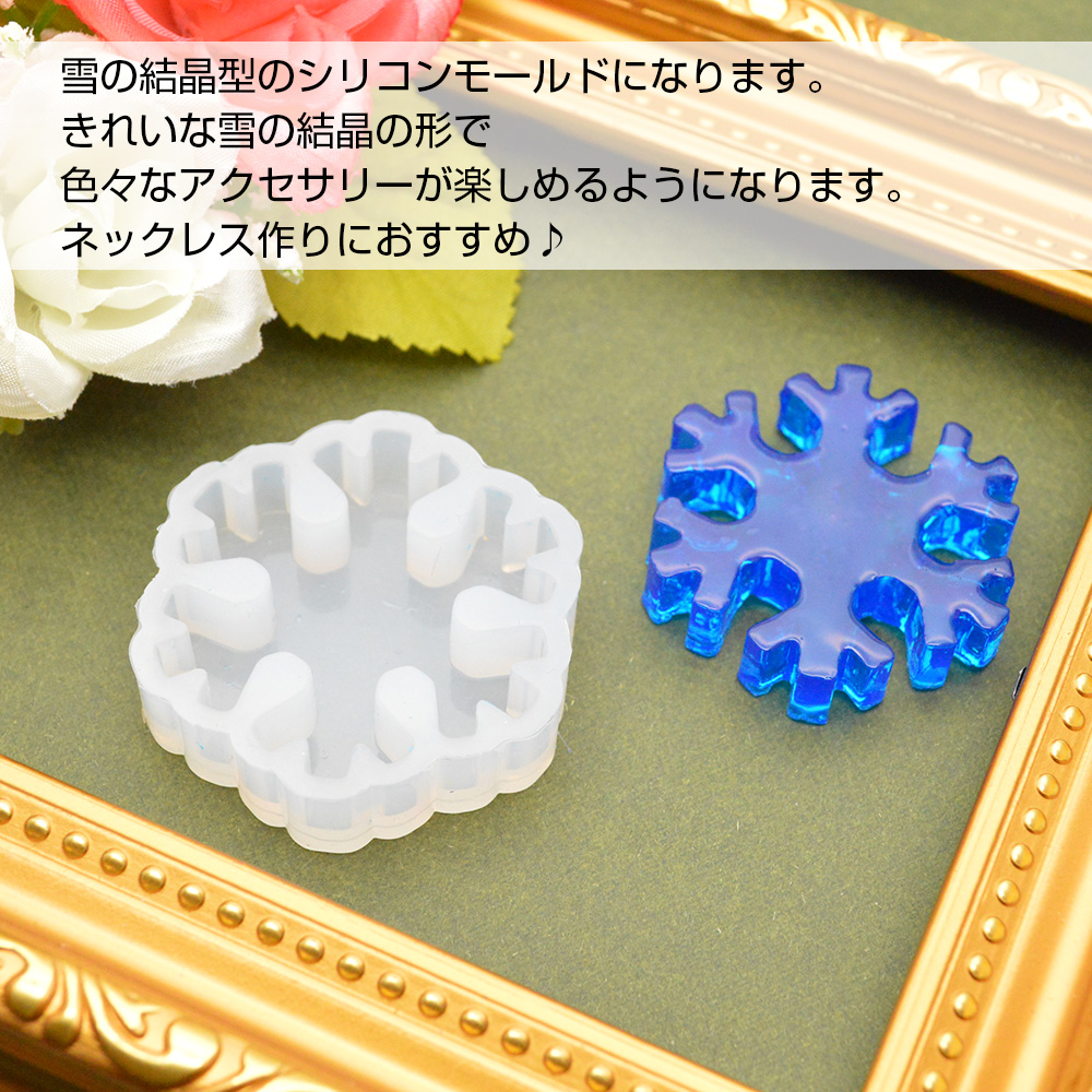 ■商品説明: 雪の結晶型のシリコンモールドになります。きれいな雪の結晶の形で色々なアクセサリーが楽しめるようになります。ネックレス作りにおすすめ♪。
