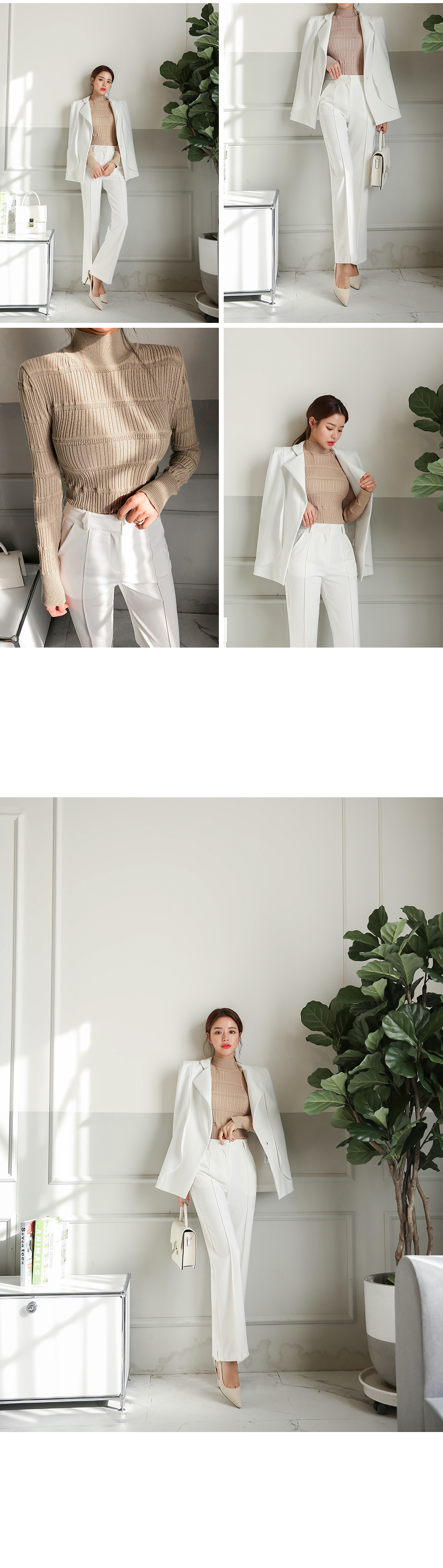 '세미 부츠컷라인으로 세련된 무드의 절개 슬랙스'