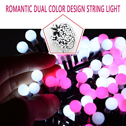 Litake Globe String Lights, 26ft 400 LEDs Waterproof Christmas Lights, 8 Modes Outdoor Indoor Decorative Fairy Lights for Christmas, Garden, Bedroom, Party, Wedding, UL Listed (Pink+White)