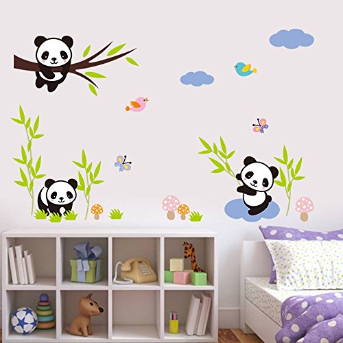 -. Title : BIBITIME Forests Birds Butterfly Panda Family Wall Decor Kids Baby Nursery Bedroom Stickers Mural Decals