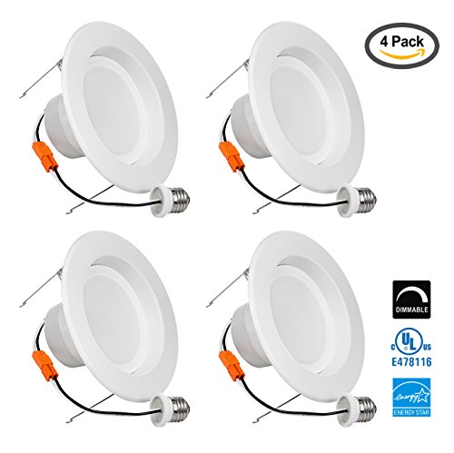 LB13114 5/6 Inch LED Downlight Retrofit Recessed Lighting Fixture, High Output, 18W (120W) Soft white 3000K, 1500 Lumens, Retrofit LED Recessed Lighting Fixture, LED Ceiling Light, Dimmable (4 Pack)