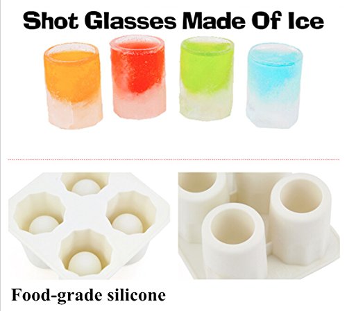 Haplain Silicone Ice Shot Glass Cube Tray Shot Shooters Frozen Party Drink 4 Glass Mould