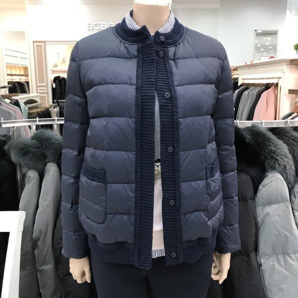 니트 포인트가 돋보이는 가벼운 구스다운입니다.